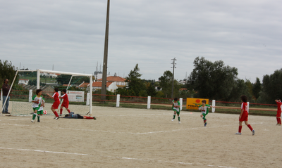 Os Benjamins B do Lusitano conseguiram arrecadar mais 3 pontos pela vitória por 3-1 frente ao Sport Lisboa e Évora. Com uma primeira parte sem grande história e um empate a uma bola conseguiram os nossos Pestinhas Verdes animar a assistência brindando-a com um resultado final mais justo, dada a sua supremacia no campo. Estiveram na origem dos golos 3 atletas distintos nomeadamente Nuno Figo (golo da foto), Gonçalo e Ricardo. Os golos nasceram através de excelentes assistências feitas por Lucas e João Patinho. Mais uma vez ficou provado que o trabalho de equipa compensa e que uma equipa é mais forte quando se entreajuda. Com excelentes exibições estiveram também os dois guarda-redes dos Pestinhas, Brazão e Gui e os defesas Manuel e Diogo Carvalho que negaram ao adversário a hipótese de alteração do resultado obtido. A assinalar ainda que a braçadeira de capitão foi desta vez entregue ao jogador mais experiente do grupo, o atleta Zé Miguel. Com este resultado os Pestinhas Verdes isolaram-se no segundo lugar do grupo atrás da fortíssima equipa de Portel, adversário que para a semana recebemos em casa.